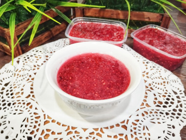 Если планируете использовать пюре сразу, через сутки переставьте ёмкости в холодильник. В холодильнике пюре храните до 3 недель. Для более длительного хранения поставьте ёмкости с малиной в морозильную камеру. В замороженном виде такое ягодное пюре храните до одного года.