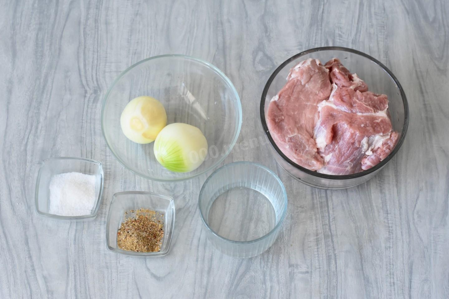 Подготовьте все необходимые ингредиенты. Свинину вымойте, обсушите и нарежьте небольшими кусочками. Вместо шеи можете взять другую часть свинины или вообще заменить ее на другое мясо по своему вкусу. Лучше использовать свежее мясо, но если есть только замороженное, то предварительно разморозьте его. Как правильно это сделать читайте в конце рецепта.