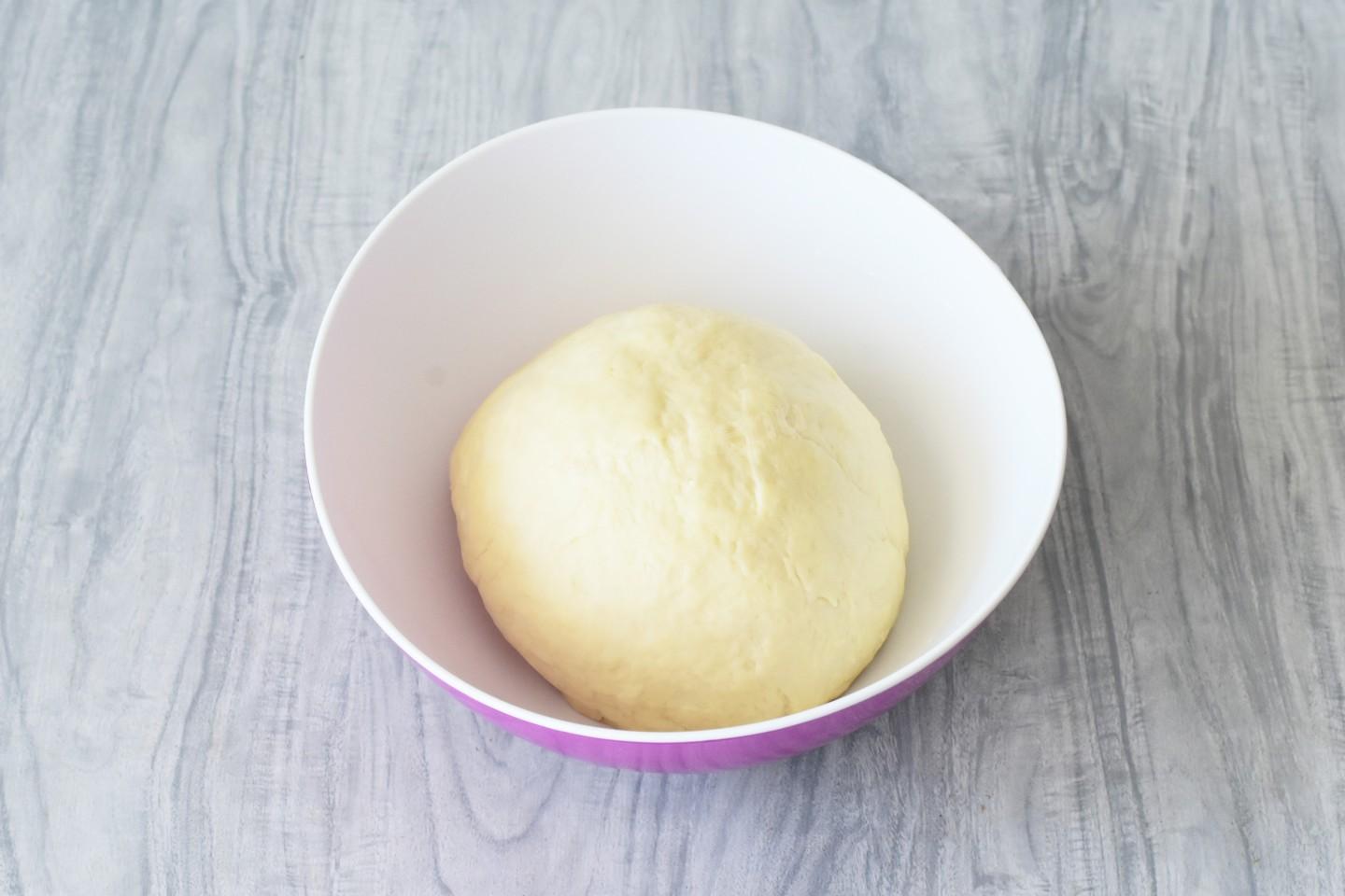 Тесто скатайте в шар, заверните в пленку и оставьте на 30 минут. За это время в муке разовьется клейковина, и тесто получится эластичнее и податливее.