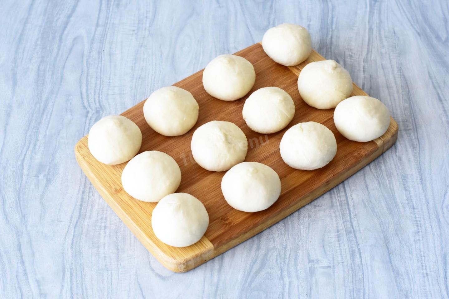 Это просто сделать, скатав из теста колбаску и разделив его ножом на равные части. Каждый кусочек скатайте в шарик. У меня получилось 12 штук.
