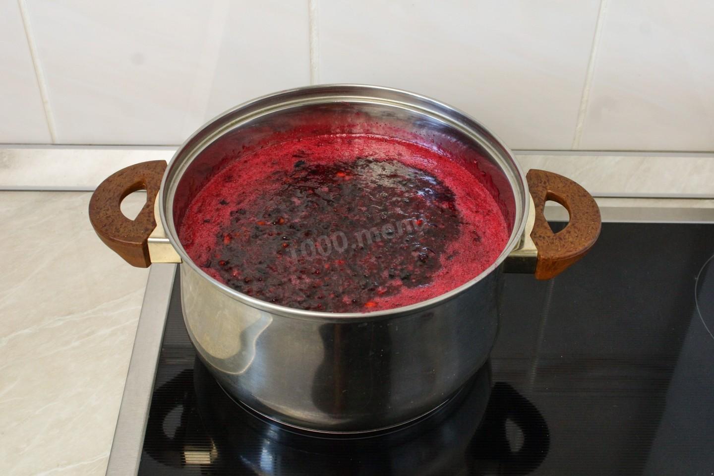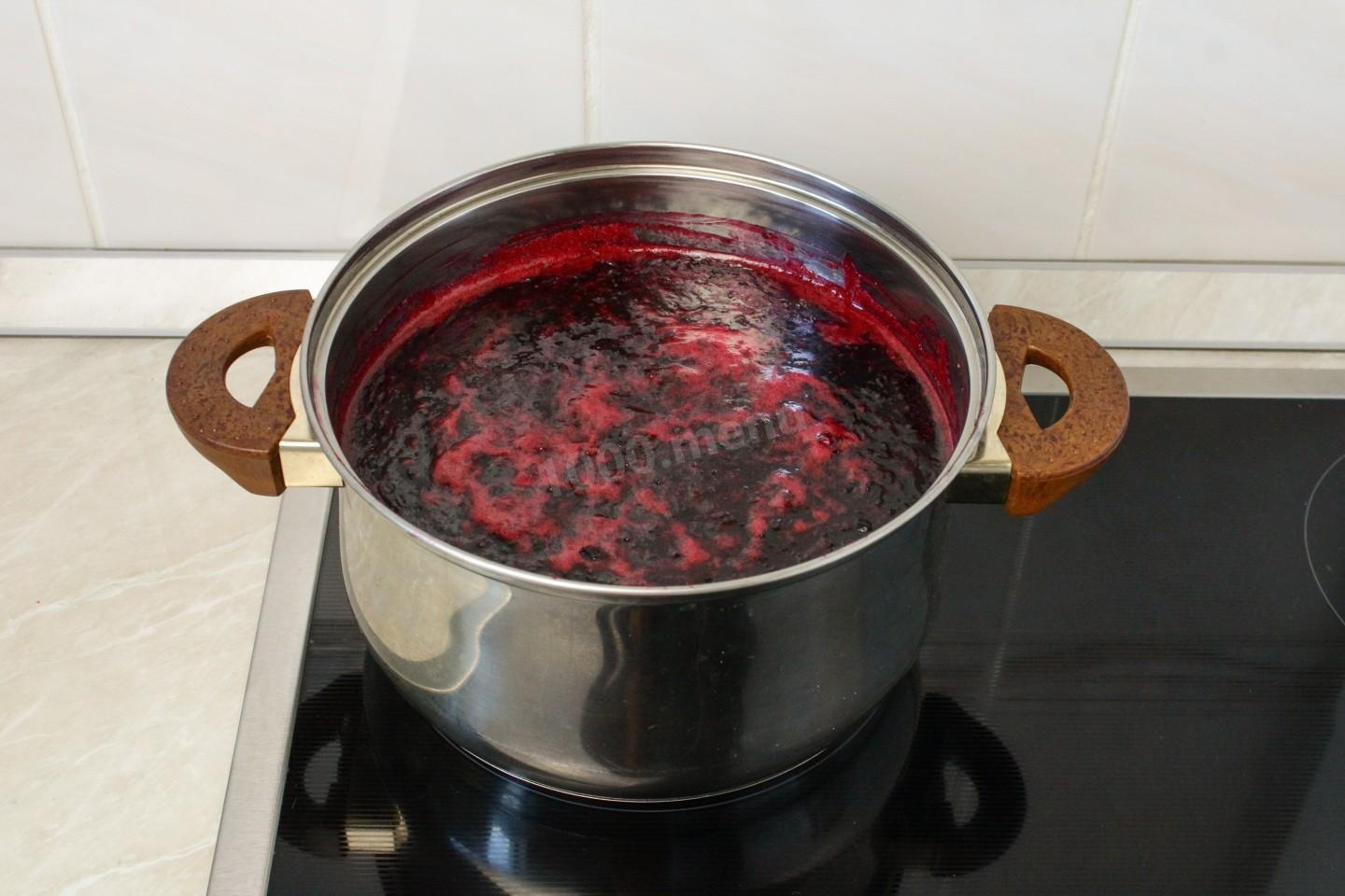Полученное пюре выложите в подходящую по объему кастрюлю и засыпьте сахаром, перемешайте. Пропорции сахара и ягоды можно взять 1:1 либо 1:1,5. Ориентируйтесь на свой вкус с учетом вкуса ягод. С выбором кастрюли для приготовления поможет статья по ссылке в конце рецепта.