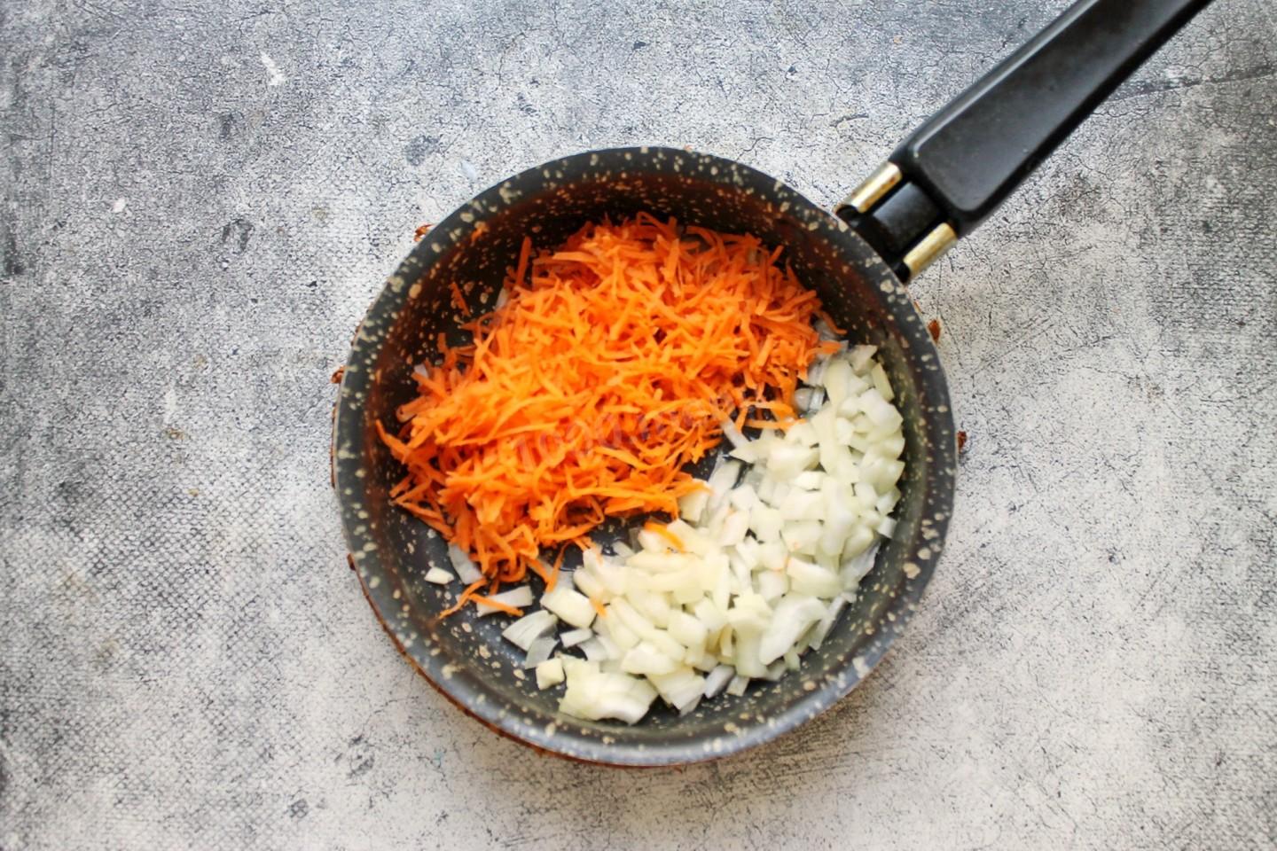 Для этого репчатый лук мелко порежьте, а морковь натрите на крупной терке. В сковороду налейте растительное масло, положите овощи и обжаривайте на среднем огне в течение 5-7 минут, перемешивая. Учтите, что у разных масел разная температура дымления, об этом подробнее можно прочитать под шагами ниже. Поставьте кастрюлю обратно на огонь и доведите до кипения. Положите макаронные изделия и сразу перемешайте, чтобы они не слиплись.