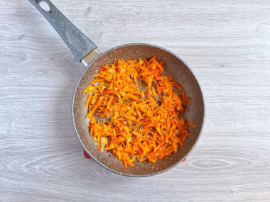 Имейте в виду, что от того, как Вы измельчите морковь, зависит и конечный результат в этом блюде: натертая морковь в процессе термической обработки превратится в кашицу и равномерно смешается с остальными ингредиентами, нарезанная соломкой или брусочками сохранит свою форму.