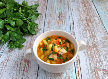 Главное преимущество этого вкусного первого блюда в том, что готовится оно очень быстро и просто. Не смотря на небольшой набор продуктов получается довольно сытный суп, который нравится всем!