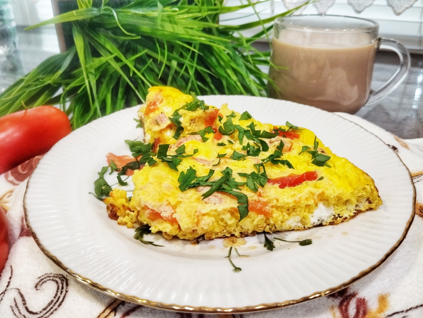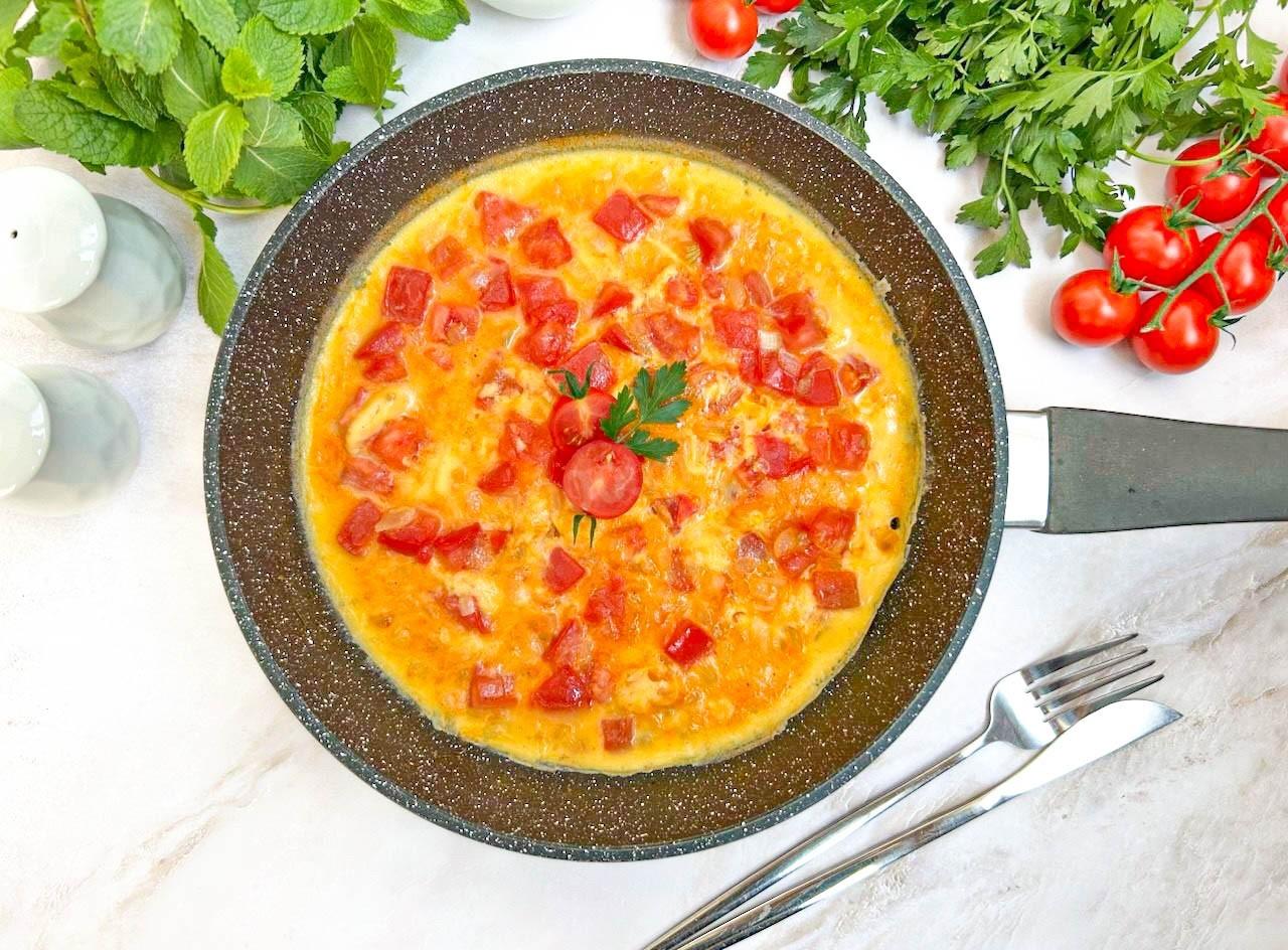 Омлет — традиционное блюдо французской кухни, но его вариации есть во всём мире. Добавление овощей, таких как лук и помидоры, появилось как способ сделать завтрак более питательным. Сегодня это один из самых популярных домашних завтраков во многих странах.