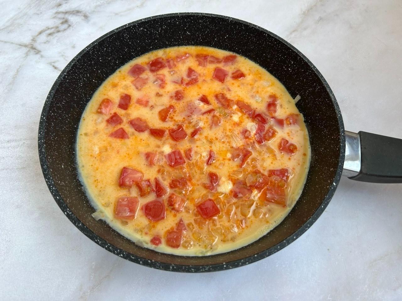 Шаг 1. Как сделать омлет лук помидоры на сковороде?