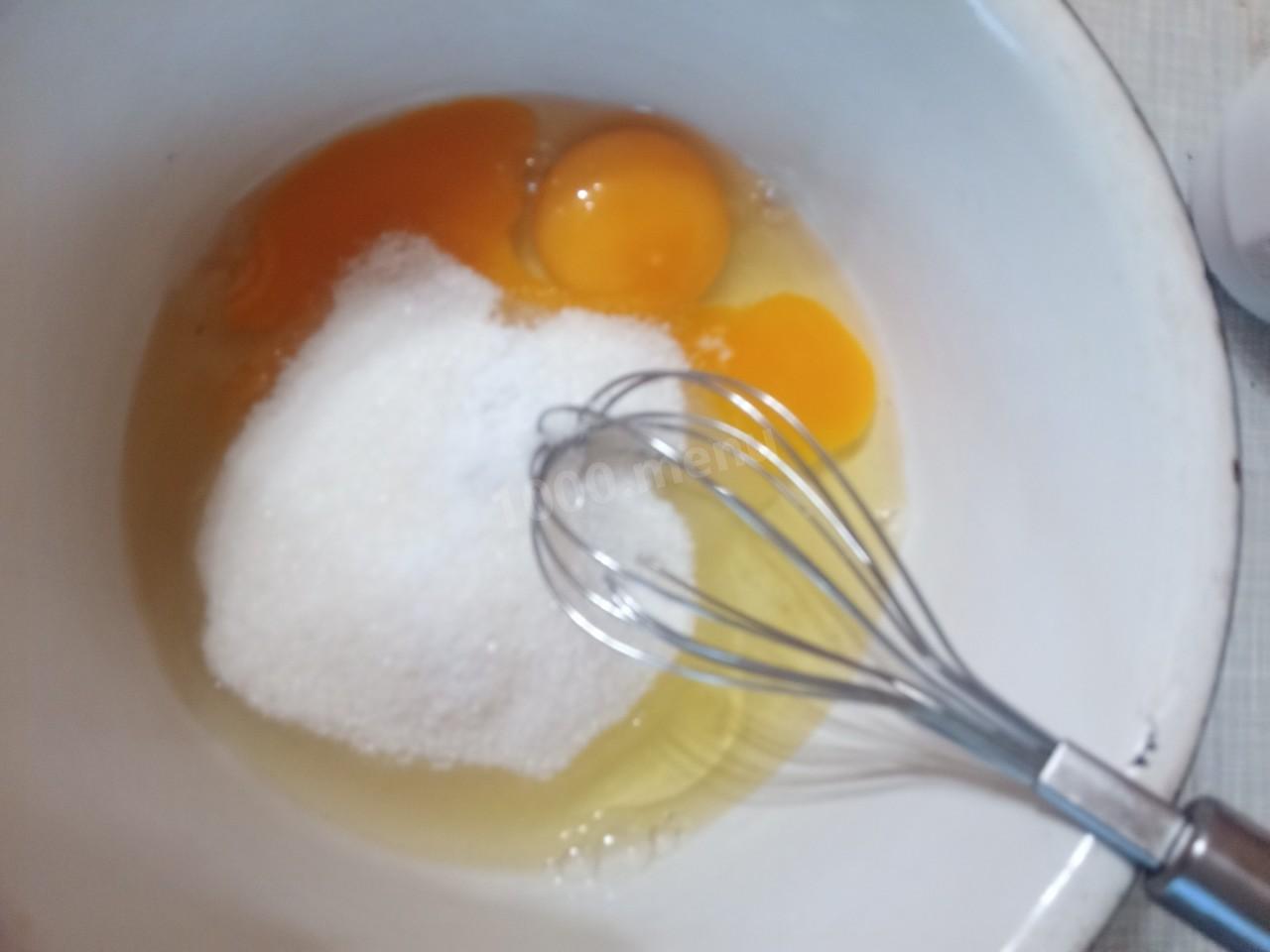 Смешиваем и растираем в глубокой миске яйца, сахар и соль до полного растворения сахара.