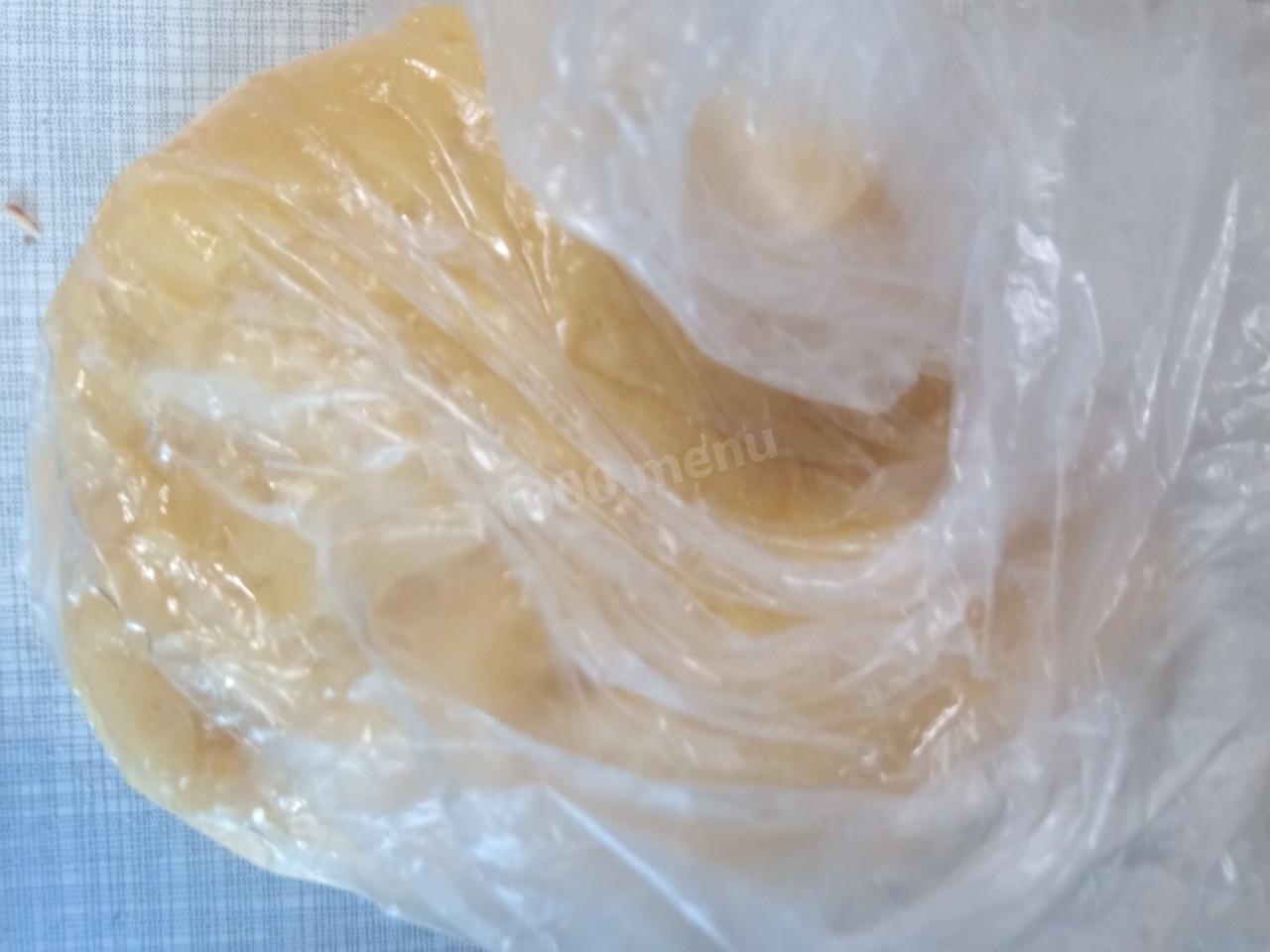 Замешиваем руками. Отделяем 1/4-1/3 часть теста (у меня это 231 г.) разделяем на 4-5 шариков(т.к. при натирании тесто быстро оттаивает и становится пластичным, , завернув в пакет, отправляем в морозильник на 25-30 минут.