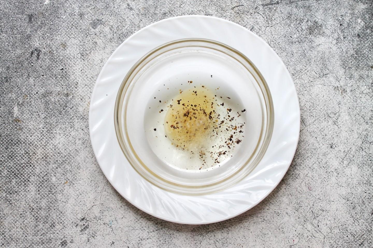 Налейте в миску растительное масло, посолите, добавьте мед и поперчите. Все хорошо перемешайте до объединения. При желании в соус можно добавить немного лимонного сока или зерновой горчицы.