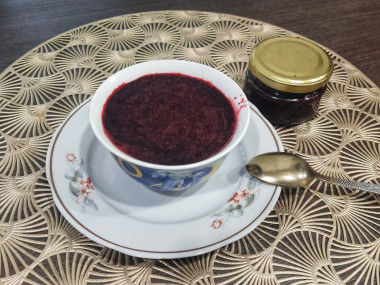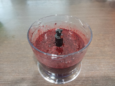 Ягоду промыла, пробила небольшими импульсами в чаше блендера. Затем частями добавила сахар, хорошенько перемешивая.