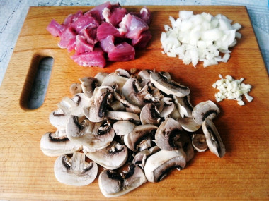 Как сделать гуляш из говядины с макаронами и шампиньонами?