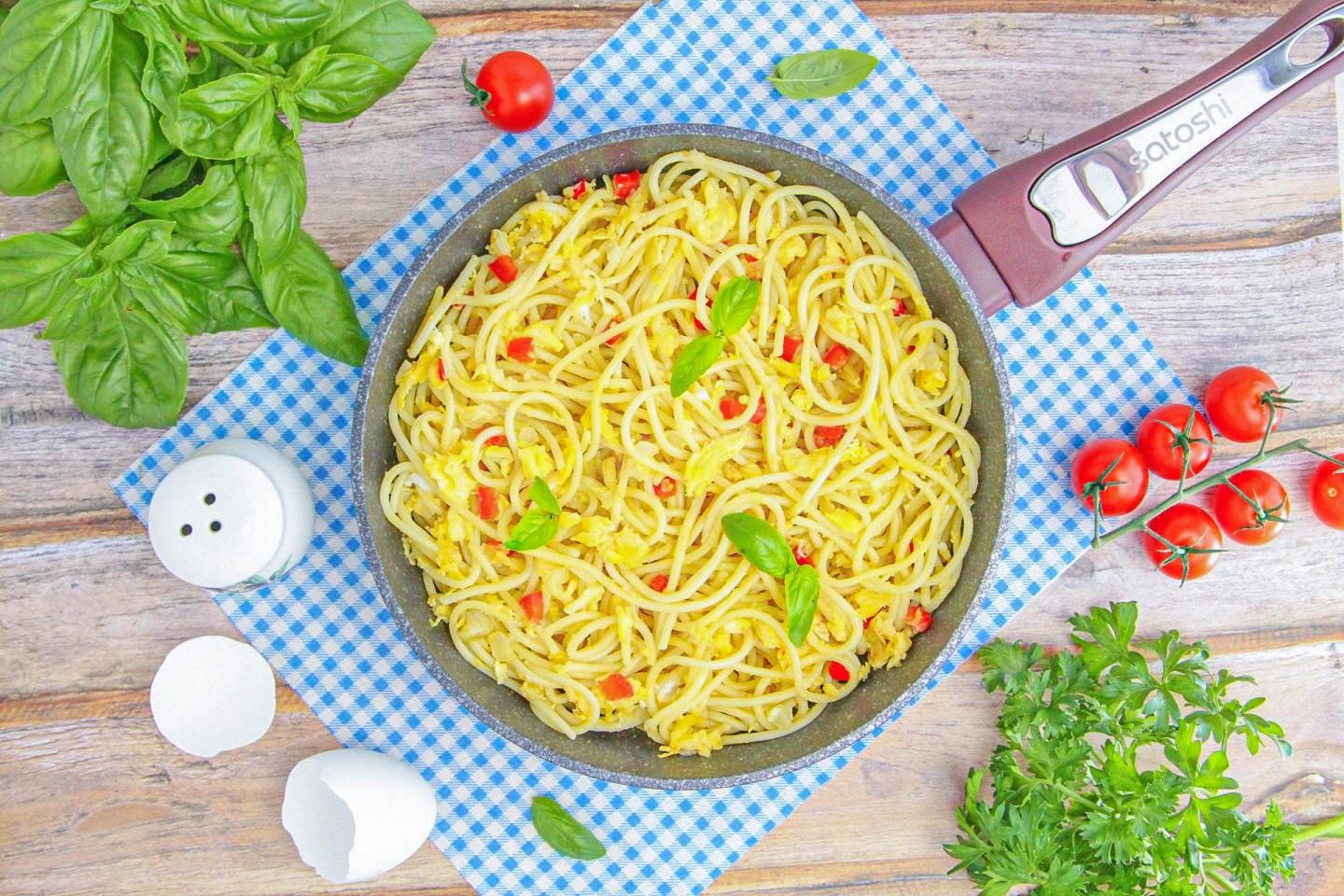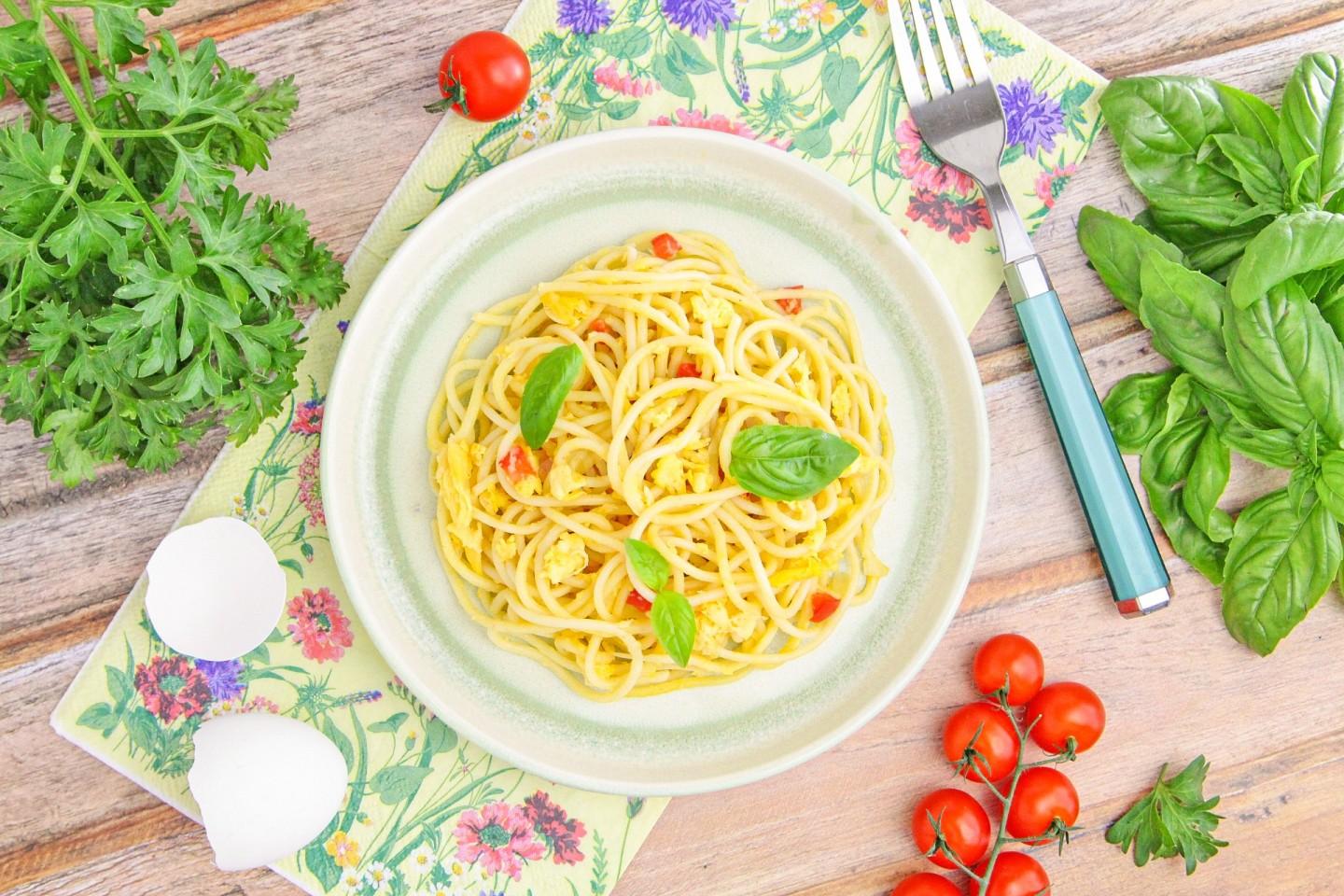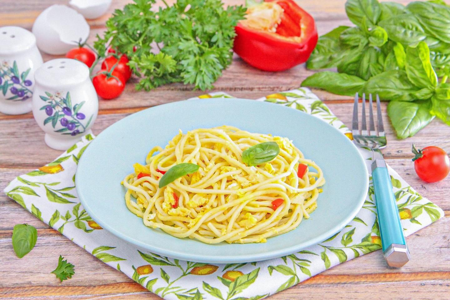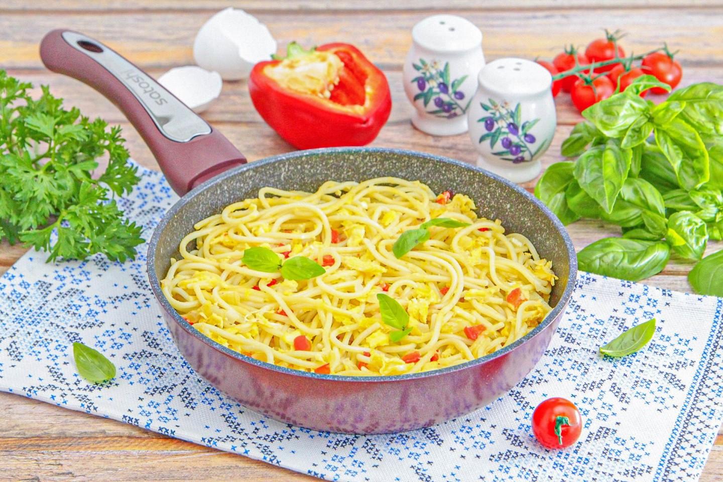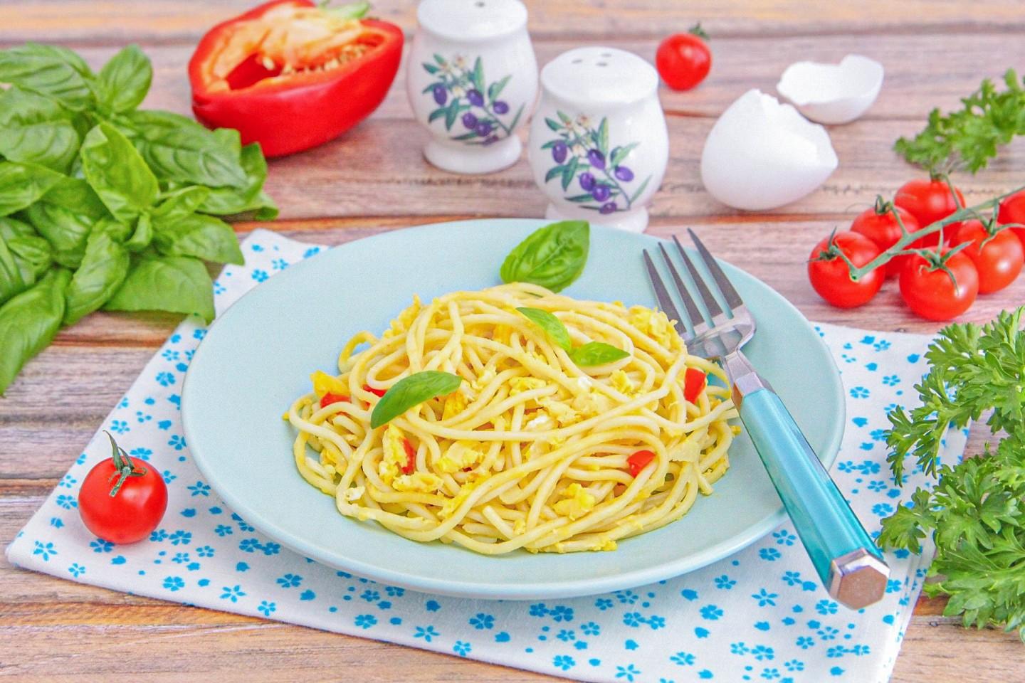 Спагетти с яйцом – источник белка и углеводов, дающий энергию. Яйца богаты витаминами D и B12, а паста из твёрдых сортов пшеницы полезна для пищеварения. Овощи добавляют клетчатку и витамин C.