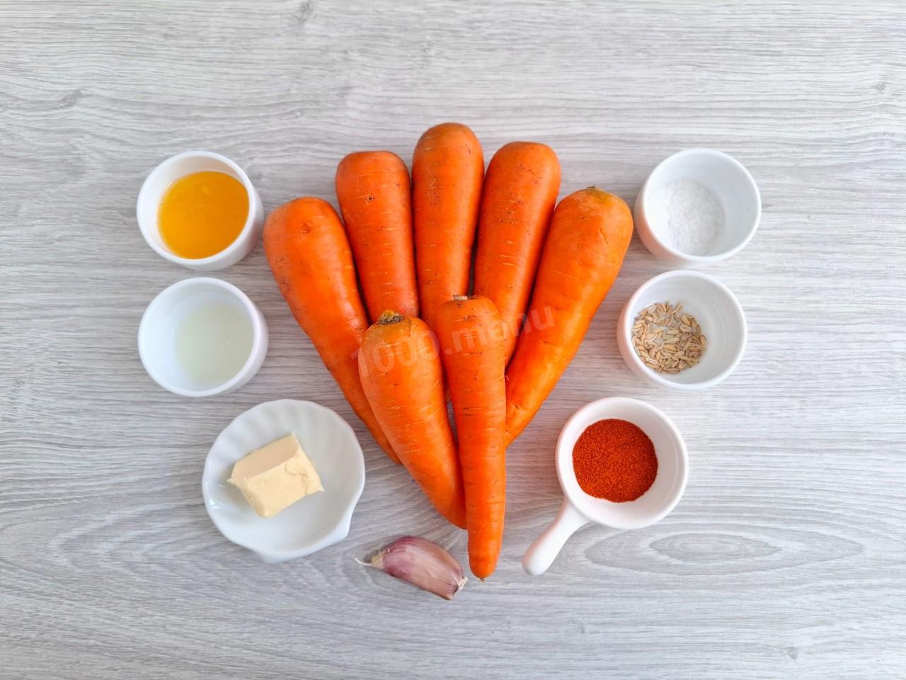 Морковь берите яркую и сочную, без повреждений, промойте её щеткой и обсушите. Очистите морковь при помощи ножа или овощечистки. Чеснок очистите и сполосните. Количество чеснока, специй и соли берите на свой вкус. Сливочное масло выбирайте качественное, без растительных добавок, заранее достаньте его из холодильника.