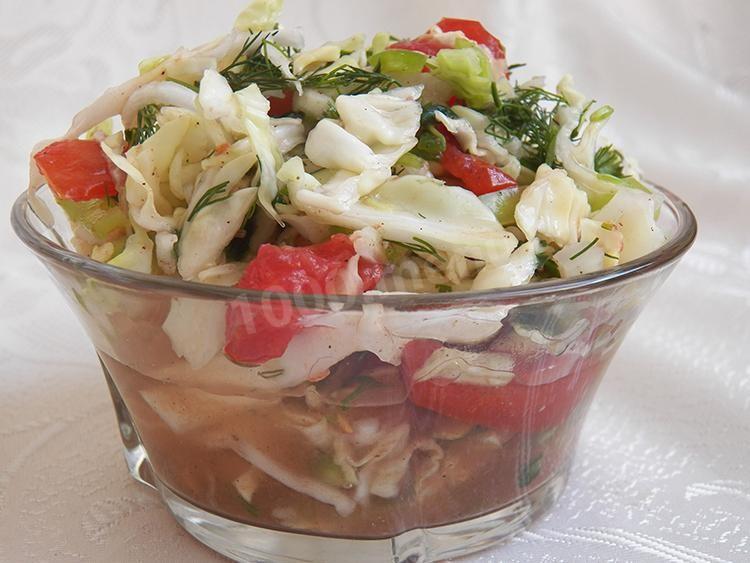 Рецепт капусты по-мексикански придал новизну и оригинальность обычному капустному салату на ужин. Только я кинзу заменила петрушкой. Вместо лайма использовала лимон, причем не отжала сок, а очень мелко порезала на кусочки вместе с кожицей, при этом вкус цедры придал салату дополнительную пикантность. Острый перец добавила уже после того, как салат настоялся (и только в тарелку мужа, мне же самой хватило остроты чеснока и молотого перца). Салат настоялся, пустил сок и хорошо промариновался. И я всё же заправила его растительным маслом)) После чего его вкус мне показался более завершенным. Отличный салат! Рекомендую!