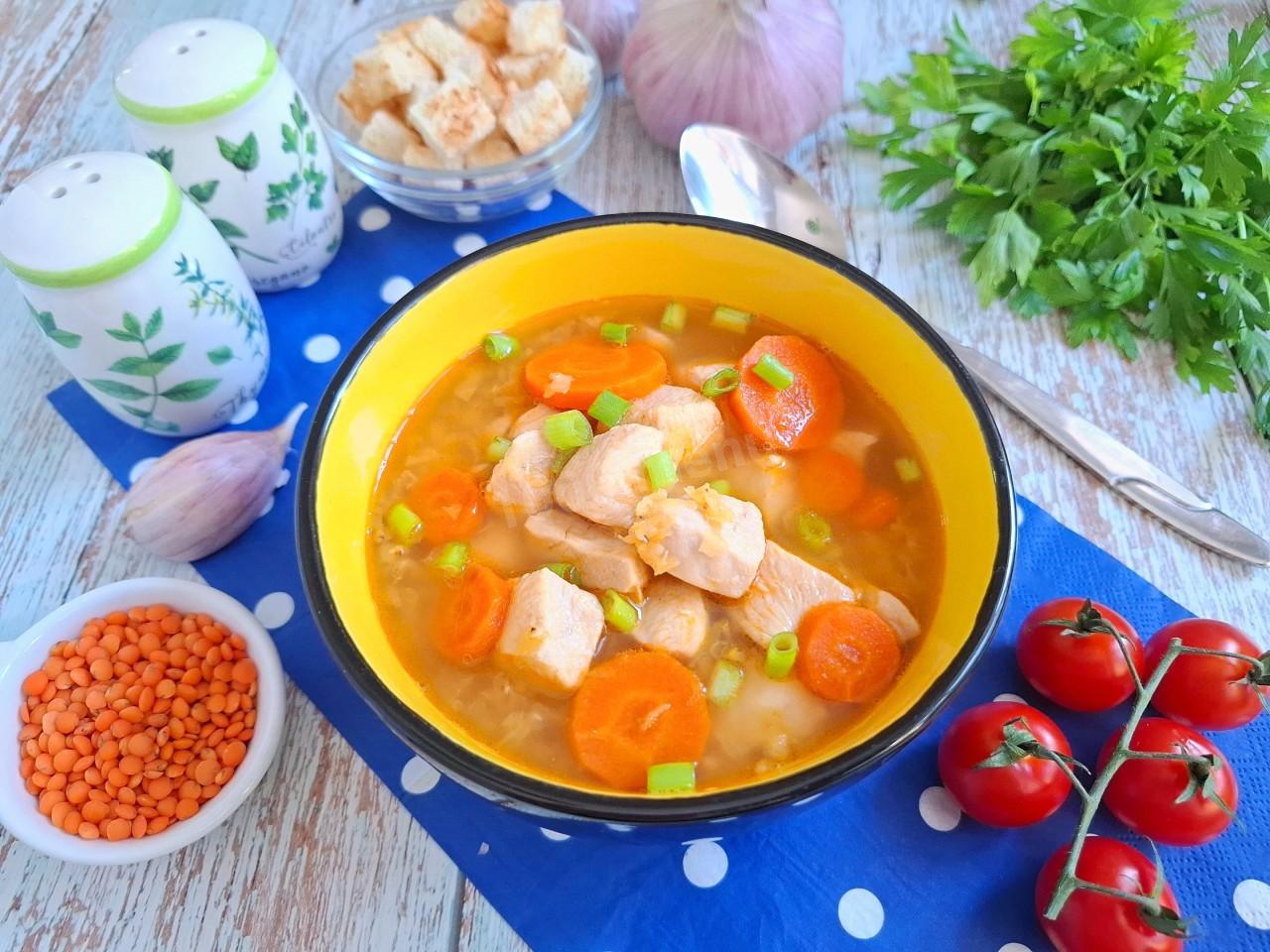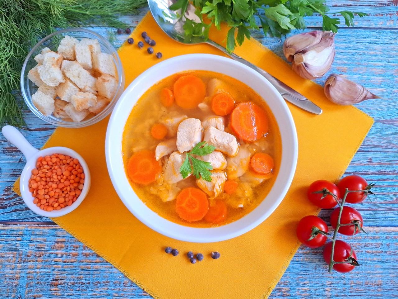 Чечевица – один из древнейших продуктов, её ели ещё в Древнем Египте. В сочетании с курицей она делает суп сытным, но не тяжёлым.
