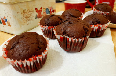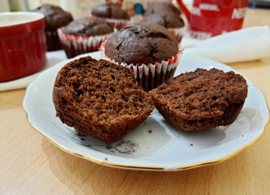 Захотелось приготовить какую-то быструю шоколадную выпечку к чаю))) Хорошо, что давно сохранила рецептик этих шоколадных маффинов. Маффины, действительно, делаются очень быстро. Количество ингредиентов не увеличивала, брала, как в рецепте. Кокосовое масло заменила обычным рафинированным подсолнечным маслом. Муки взяла на одну столовую ложку больше, так как тесто показалось очень жидким. Делала в двух силиконовых формах для кексов, внутрь вставляла бумажные формочки. Так, конечно, очень удобно. Из такого количества ингредиентов, как указано в рецепте, у меня получилось 8 небольших маффинов. Маффины получились очень вкусные, нежные, с очень приятным шоколадным вкусом. Отличный рецепт!!! И что немаловажно - быстро. Единственное, для меня не очень удобно измерять ингредиенты в ложках, ведь у каждого своё понятие полной столовой ложки, я больше люблю в граммах. Но это моё субъективное мнение, на качество рецепта это не влияет. Автору огромное спасибо за такой быстрый вкусный рецептик. Вот мой фотоотчетик)))
