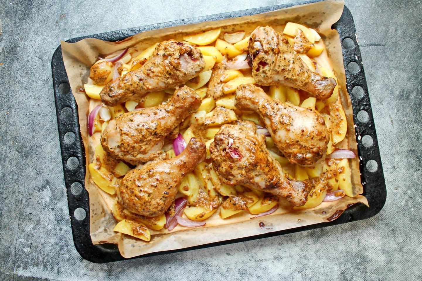 Шаг 1. Как запечь картошку с куриными ножками на противне?