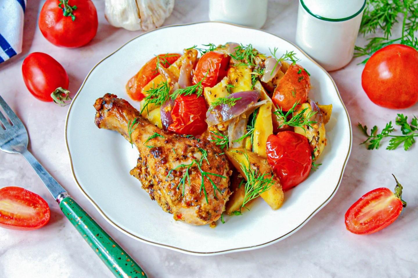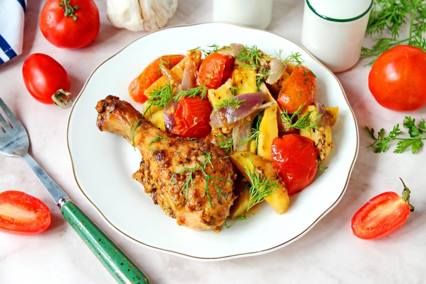 Более ПП: замените майонез на греческий йогурт, снимите кожицу с ножек перед запеканием, увеличьте порцию овощей.