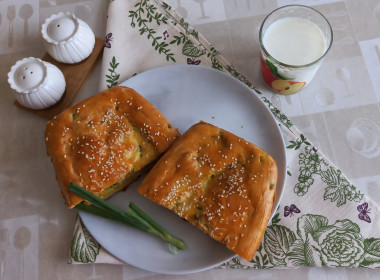 Я готовила блины на кефире с луком. Теперь можно и пирог попробовать.