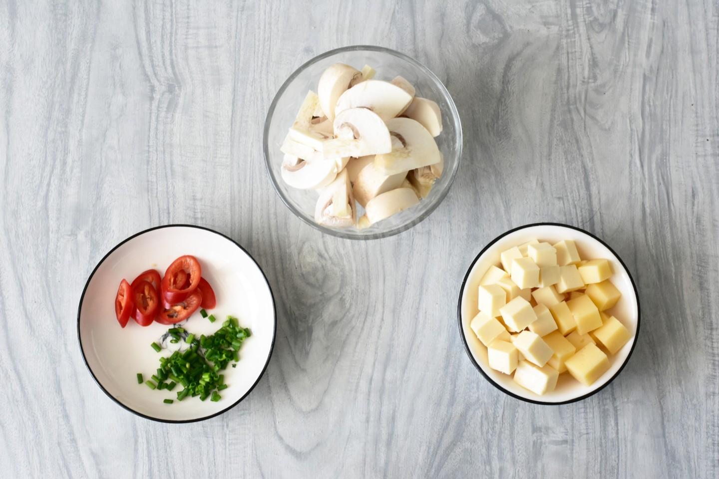 Шаг 3. Как нарезать грибы, сыр и зелень для рамена?