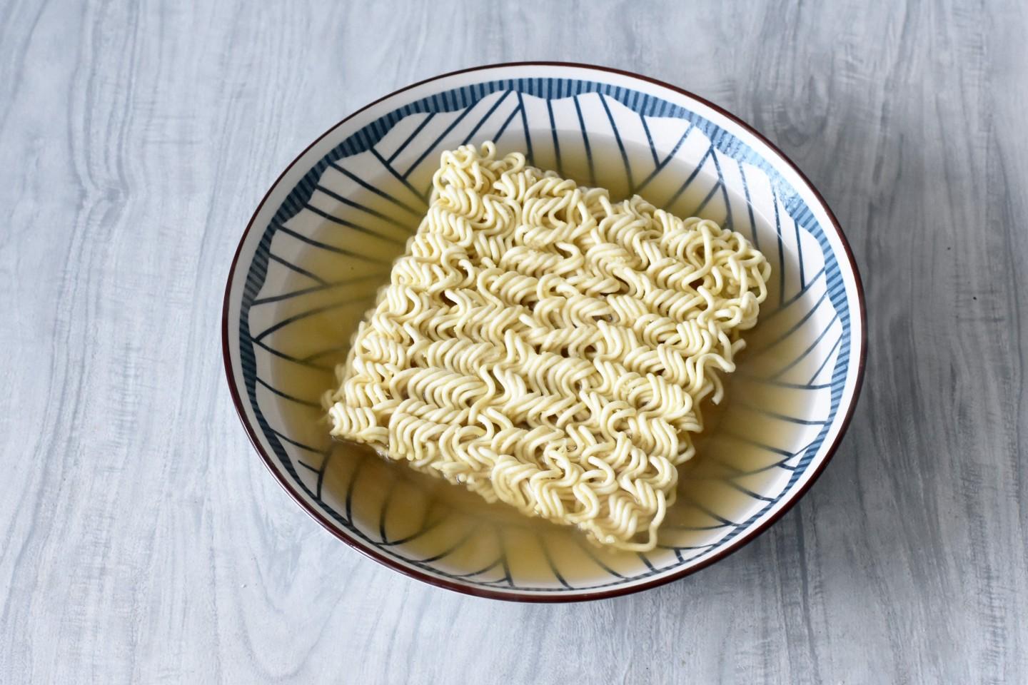 В глубокую тарелку выложите лапшу быстрого приготовления и залейте ее куриным бульоном. Накройте тарелку и оставьте на 5 минут для набухания лапши. О тонкостях приготовления различных супов вы узнаете из статьи в конце рецепта.