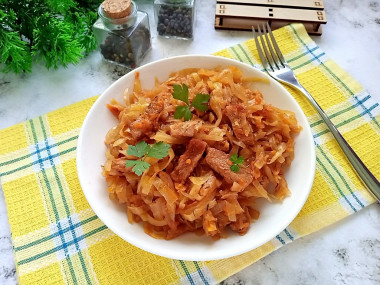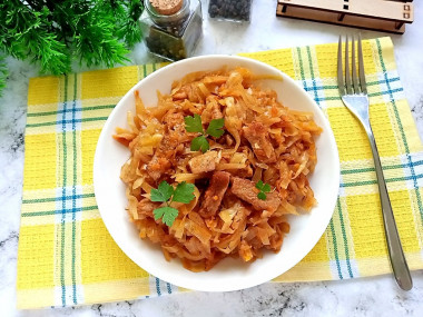 В итоге у меня получилось прекрасное второе блюдо! Капуста стала мягкой и сочной, мясо тоже хорошо размягчилось! Советую приготовить!