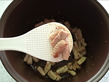 Мясо нарежьте небольшими кусочками. Мультиварку включите на режим "жарка" и разогрейте до горячего состояния. Налейте немного растительного масла и выложите нарезанное мясо. Обжаривайте мясо несколько минут, чтобы оно покрылось золотистой корочкой.