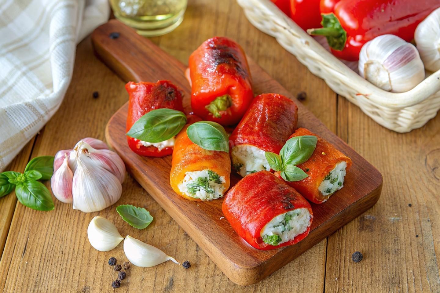 Запеченный перец сохраняет витамины (A, C), а творожный сыр – источник белка и кальция. Это легкая, низкокалорийная и полезная закуска.