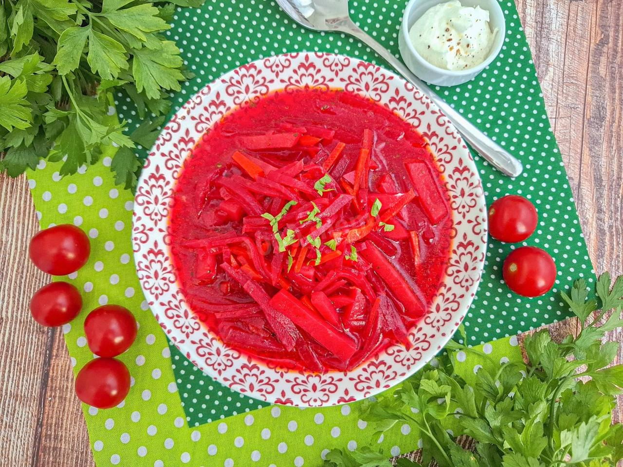 Овощи лучше выбирать сезонные, в них больше витаминов. Свеклу берите яркую и сладкую. Томатную пасту можно заменить на протертый помидор. О секретах и тонкостях приготовления различных видов супов вы можете прочитать в статье по ссылке после описания рецепта.