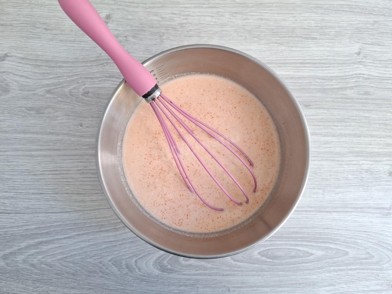 В миске соедините чистую воду и сметану, добавьте паприку и соль по вкусу. Все тщательно перемешайте венчиком, чтобы сметана разошлась.