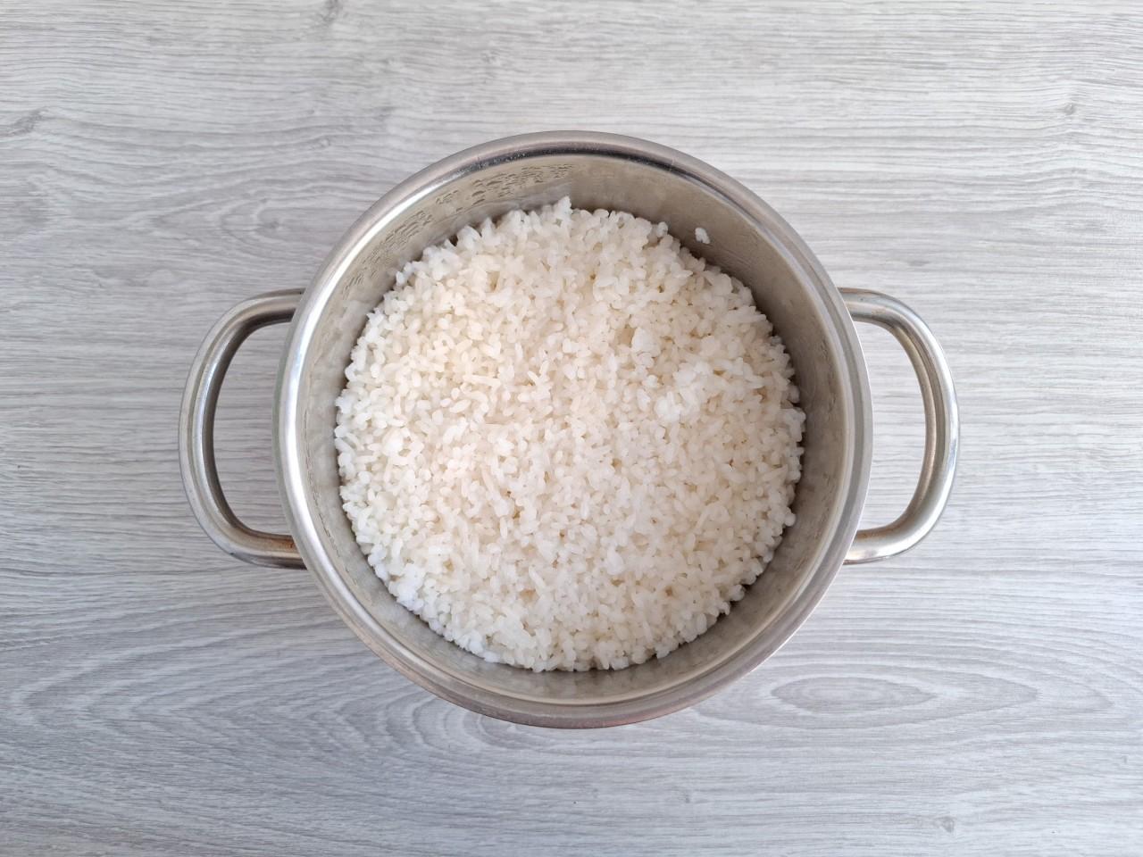 Рис подойдет любой на ваш выбор. Промойте крупу несколько раз, чтобы вымыть лишний крахмал. Затем залейте чистой водой, кастрюлю накройте крышкой и варите после закипания на минимальном огне около 10 минут. Время зависит от особенностей работы вашей плиты и готовности риса, он должен полностью впитать воду. Рис остудите. О том, как подобрать кастрюлю и о тонкостях выбора риса читайте в статье по ссылке под описанием рецепта.
