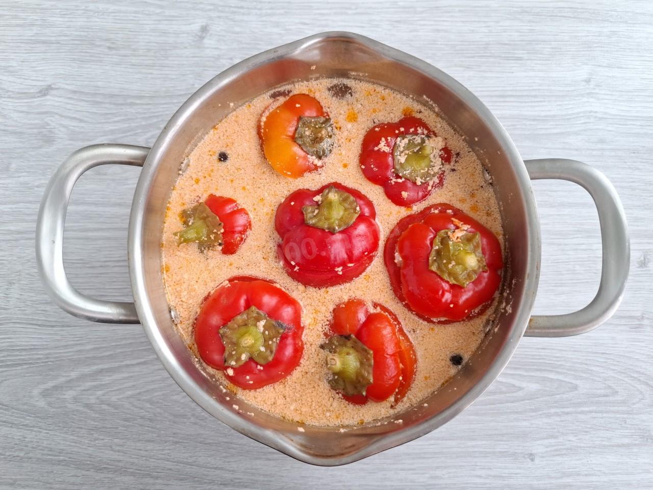 Шаг 7. Как правильно залить фаршированные перцы соусом для тушения?