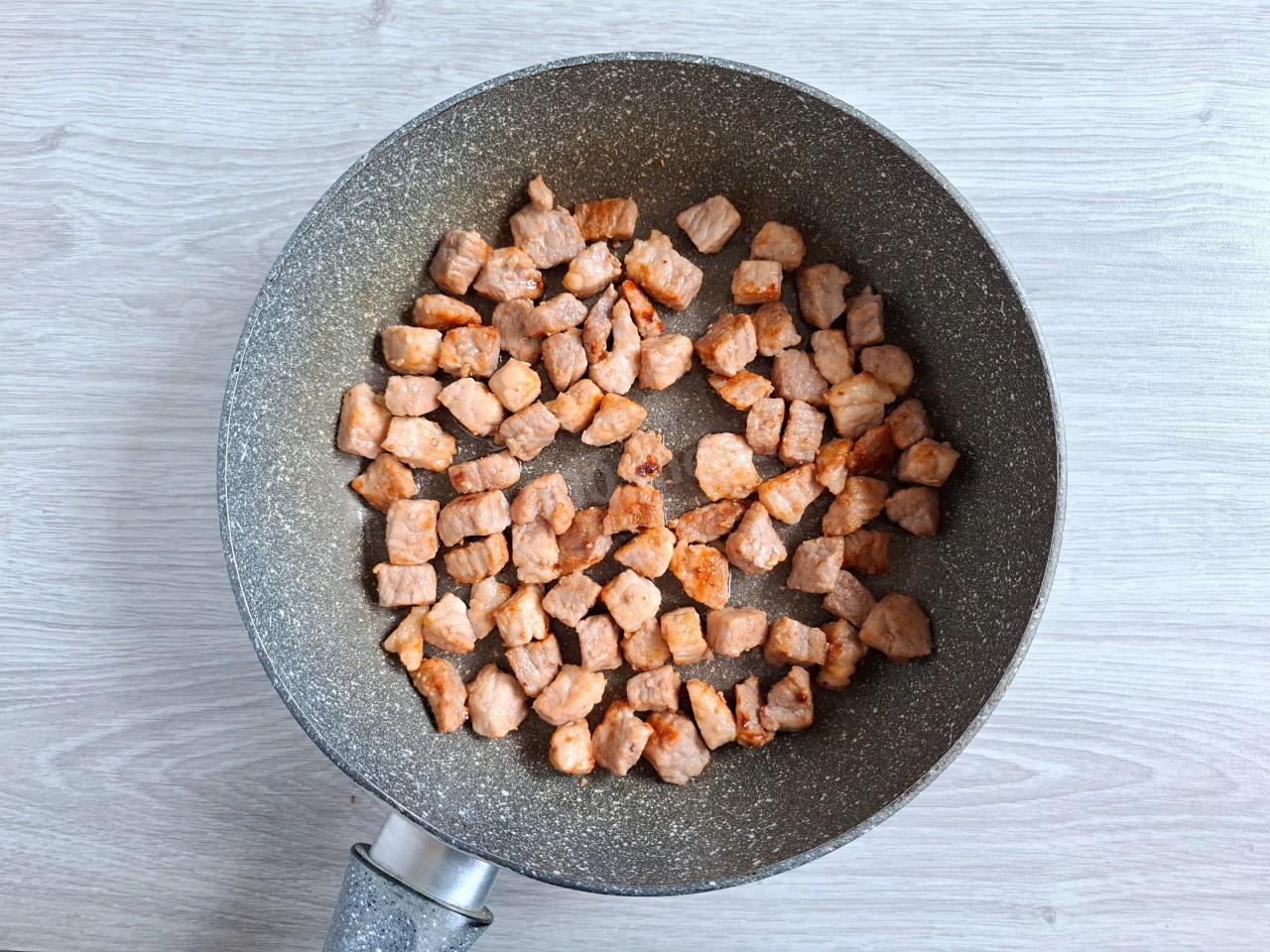 Шаг 1. Как приготовить свинину с макаронами на сковороде?