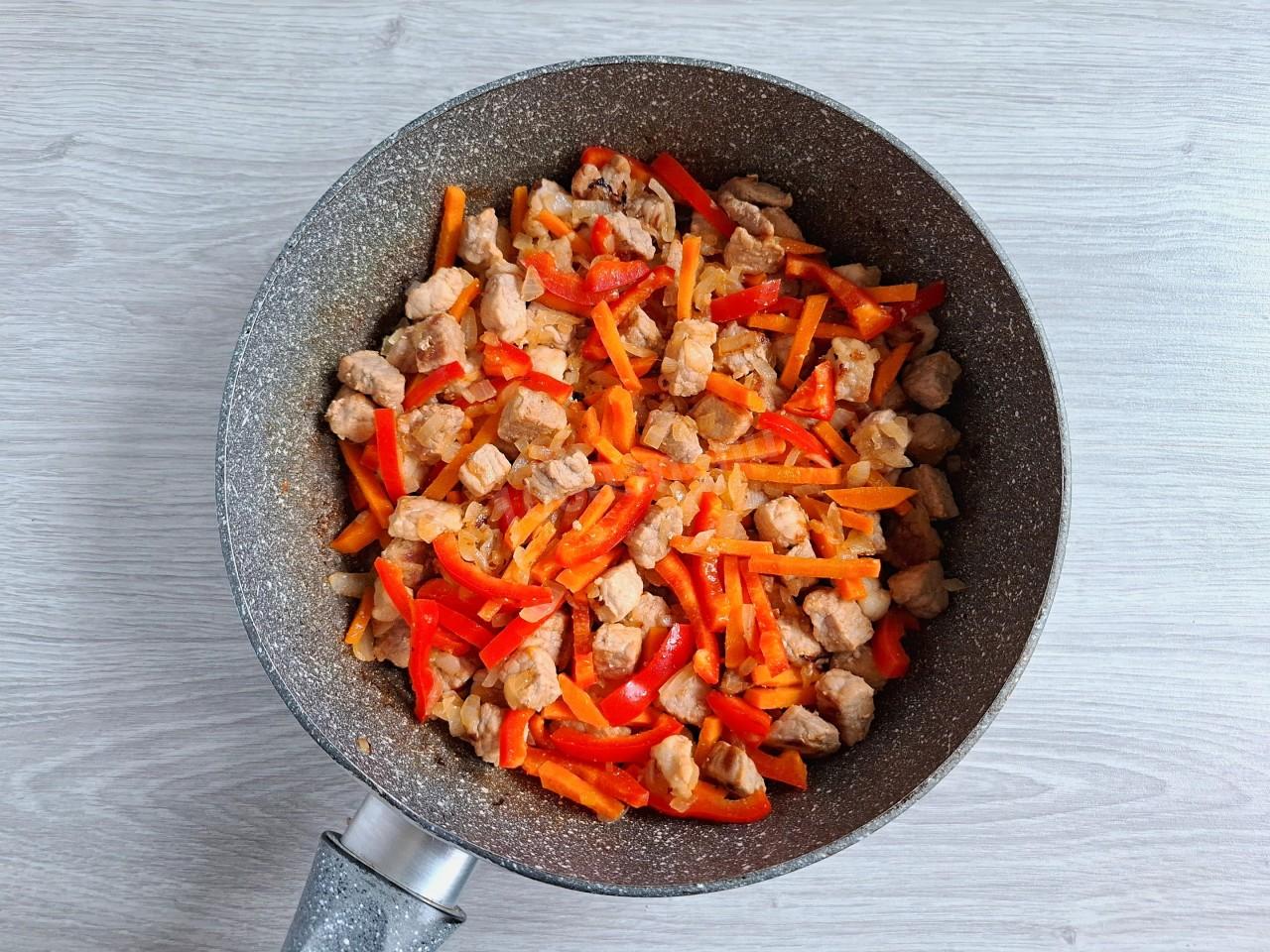 Шаг 3. Как подготовить овощи и добавить их к свинине?