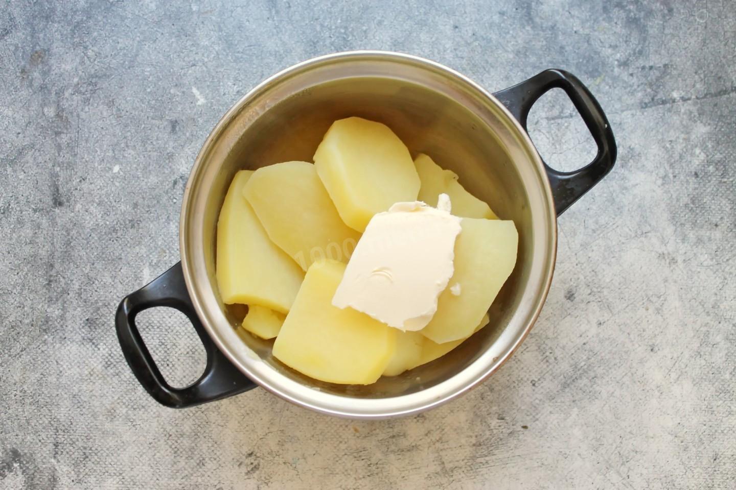 Варите картофель до готовности на среднем огне. После слейте отвар в чашку, он может понадобиться. Положите в картофель половину сливочного масла и превратите в пюре, посолите, добавьте черный перец. При желании в пюре можно добавить обжаренный репчатый лук или измельченный зеленый, специи. Если пюре получается слишком плотным, добавьте немного отвара, но следите, чтобы пюре не было жидким и держало форму.