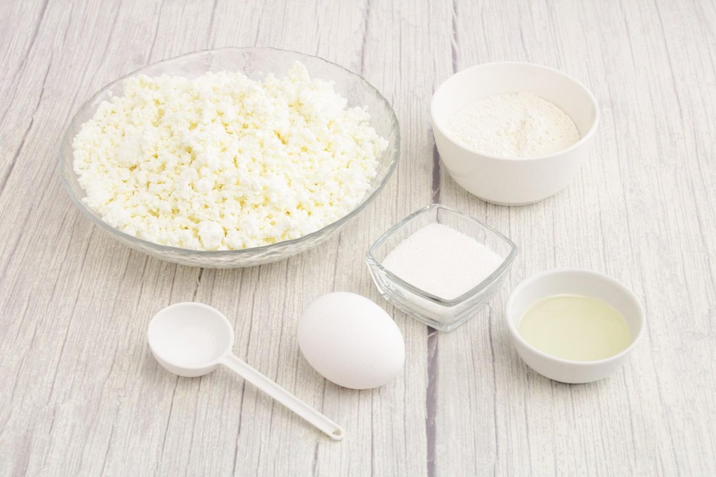 Подготовьте необходимые продукты. Творог выбирайте средней влажности, но и не сухой. Жирность творога подойдет любая. Полезную информацию о выборе творога читайте в статье по ссылке в конце рецепта. Если творог крупинками, можно сделать его более однородным при помощи погружного блендера. Если творог нежный и мягкий, можно это пропустить. Растительное масло возьмите без запаха.