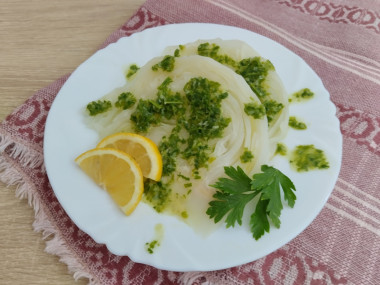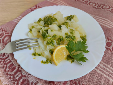 Сама по себе капуста на пару - ничего особенного, но вот с соусом, предложенным для подачи, это нечто! Для приготовления капусты я использовала пароварку, а для соуса - чоппер. Мне очень понравилась такая нарезка - ломтиками, но скорее она подойдёт больше для молодой свежей капусты. У меня же была старая и залежалая, такую было вкусно порубить ножом уже в тарелке готовую и перемешать с соусом. Здорово получилось - у обычной капусты довольно пикантный вкус! Спасибо за рецепт!