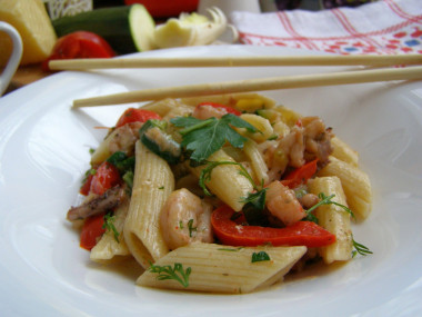 Не варите макароны с морепродуктами впрок, лучше на один прием.