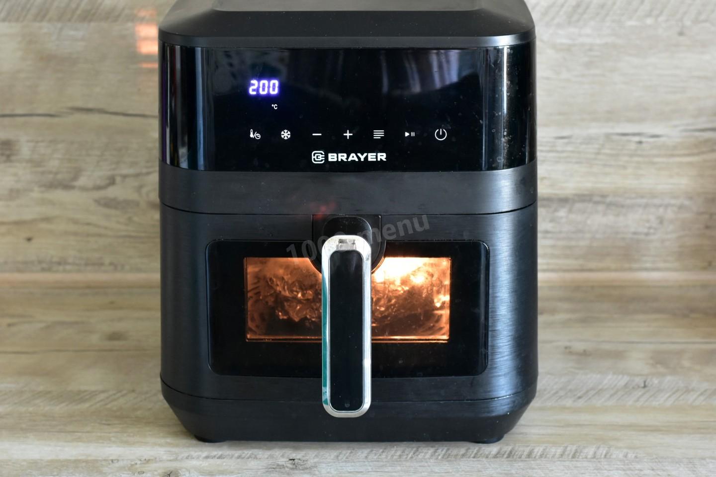 Выставите 180℃ примерно на 1 час 20 минут. Точные время и температура зависят от мощности и модели вашего аэрогриля. Сок у готового мяса должен быть прозрачный. За 10-15 минут до окончания запекания фольгу разверните, чтобы мясо зарумянилось. Но следите, чтобы оно не подгорело. По желанию фольгу можете не открывать совсем. Об особенностях работы аэрогрилей читайте в статье после рецепта.