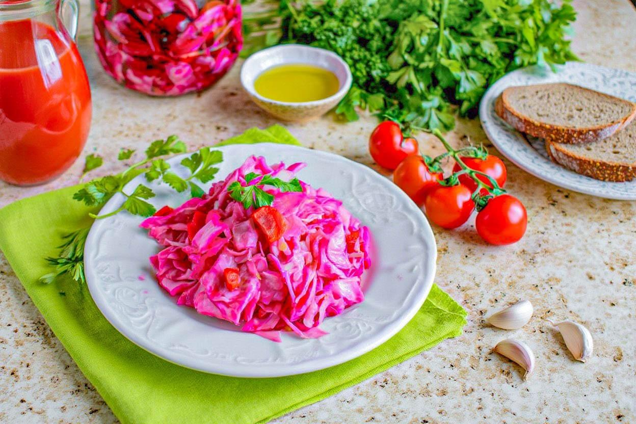 Увидела рецепт капусты пилюски со свеклой и захотелось приготовить такую необычную закуску.