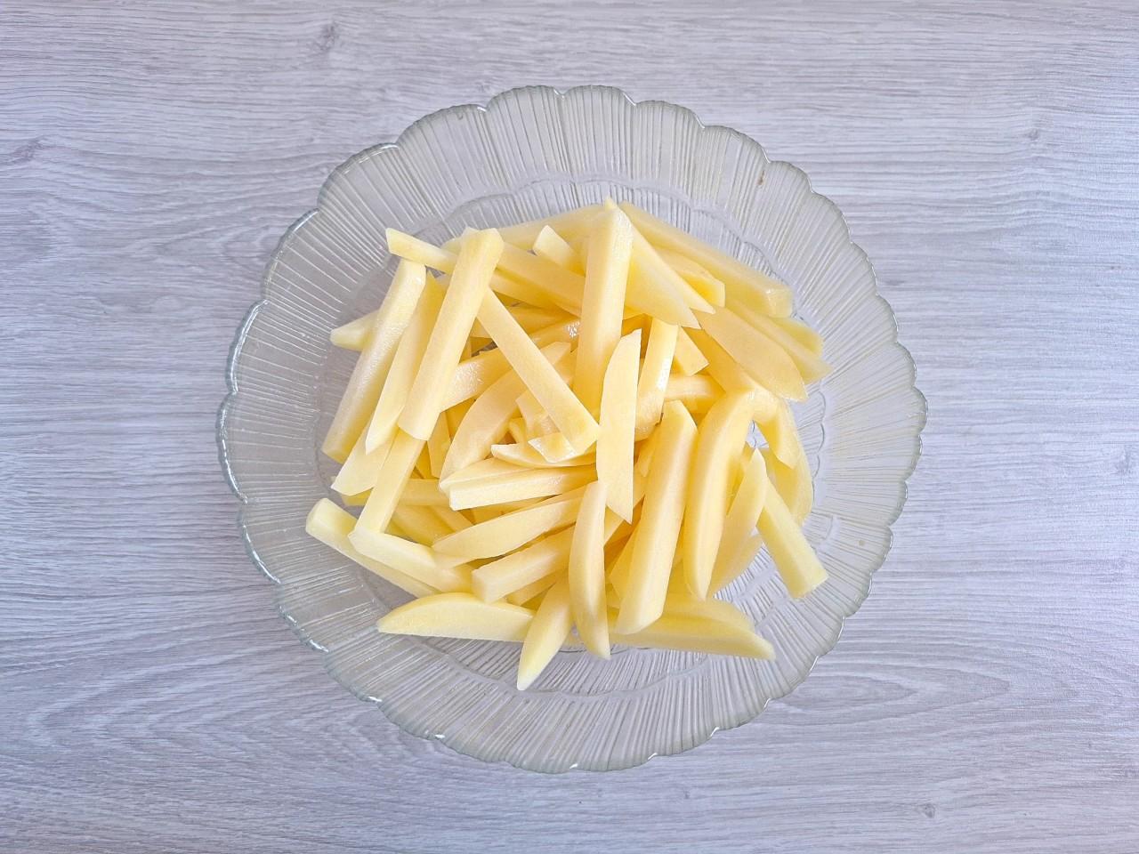 Нарезать и промыть: Нарежьте картошку соломкой и тщательно промойте в холодной воде, чтобы удалить лишний крахмал.