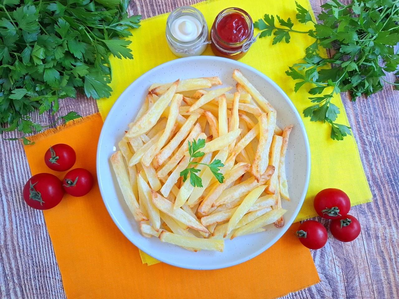 Прообраз современной картошки фри появился в Бельгии в конце XVII века. Жители придумали обжаривать в масле нарезанную соломкой рыбу, а зимой, когда река замерзала, заменяли ее картофелем. Название «french fries» закрепилось после Первой мировой войны, так как официальным языком бельгийской армии был французский. Наш рецепт в аэрогриле — это современная и умная эволюция этого всемирно известного блюда.