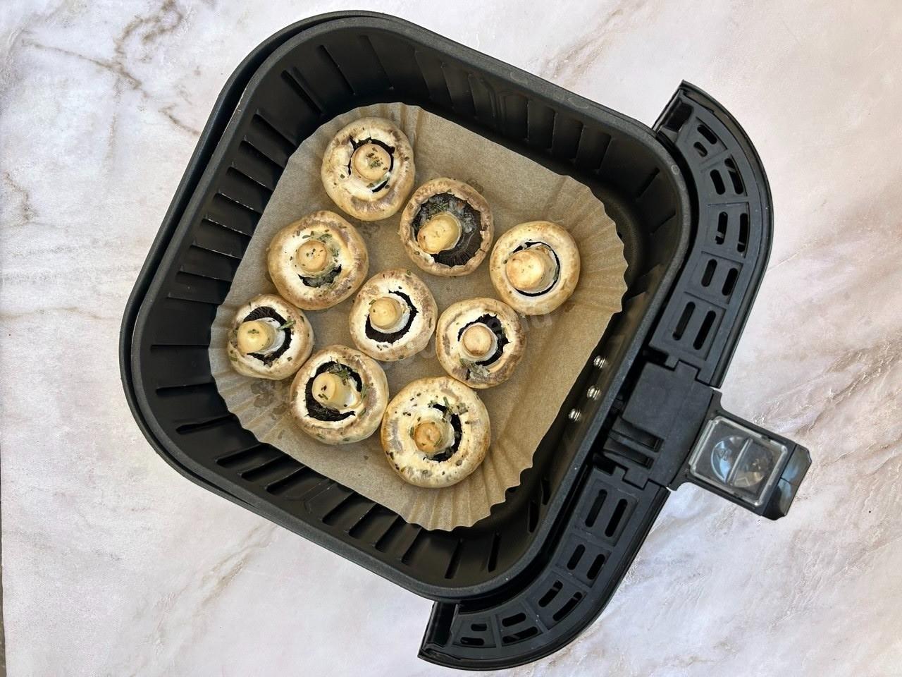 Шампиньоны на 90% состоят из воды, поэтому так здорово готовить их в аэрогриле — он выпаривает лишнюю влагу, концентрируя вкус.