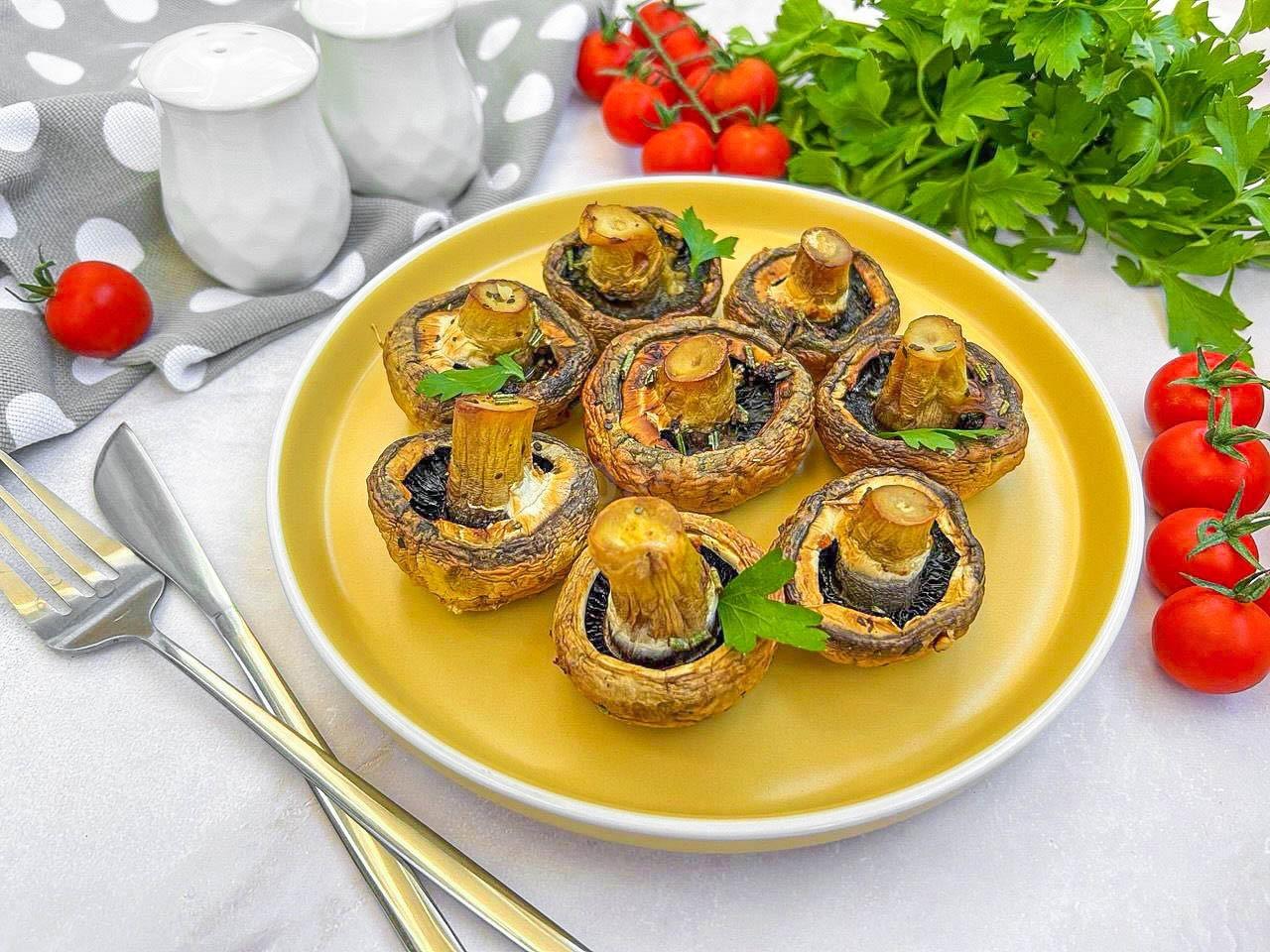Запеченные в аэрогриле шампиньоны — источник белка, витаминов группы B и селена. Приготовление с минимальным количеством масла делает блюдо низкокалорийным и полезным для пищеварения. Чеснок и травы укрепляют иммунитет и дарят антиоксиданты.