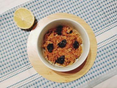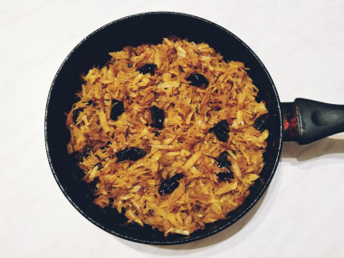 Дополнительно распаривать чернослив не нужно, так как он и так пропитается горячим соком от капусты.