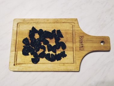 Чернослив можно использовать как крупный без косточек (калифорнийский), так и обычный, но удалив из него косточки и проверив, не остались ли осколки внутри засушенных фруктов.