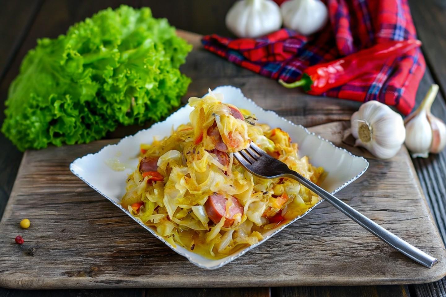 Приготовьте бигос из капусты с мясом и сосисками. Очень вкусно.