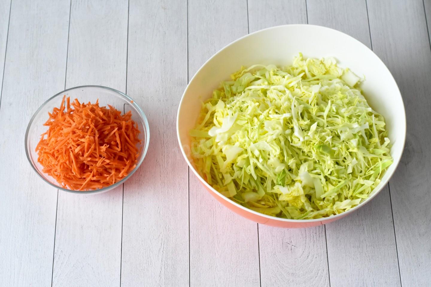 Шаг 2. Как подготовить и измельчить капусту и морковь?