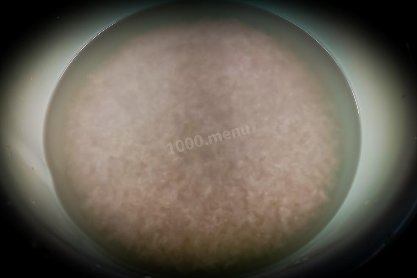 Пока наша тыква томится, мы приготовим рис. Для этого её необходимо хорошо промыть, меняя воду раз 5-7, пока сливаемая вода не станет практически прозрачной. После последнего промывания воду не сливать, а оставить в ней рис!