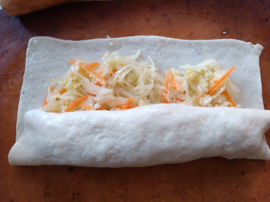 Квашеную капусту для начинки сильно не обжариваю, нравится, чтобы капуста оставалась упругой.